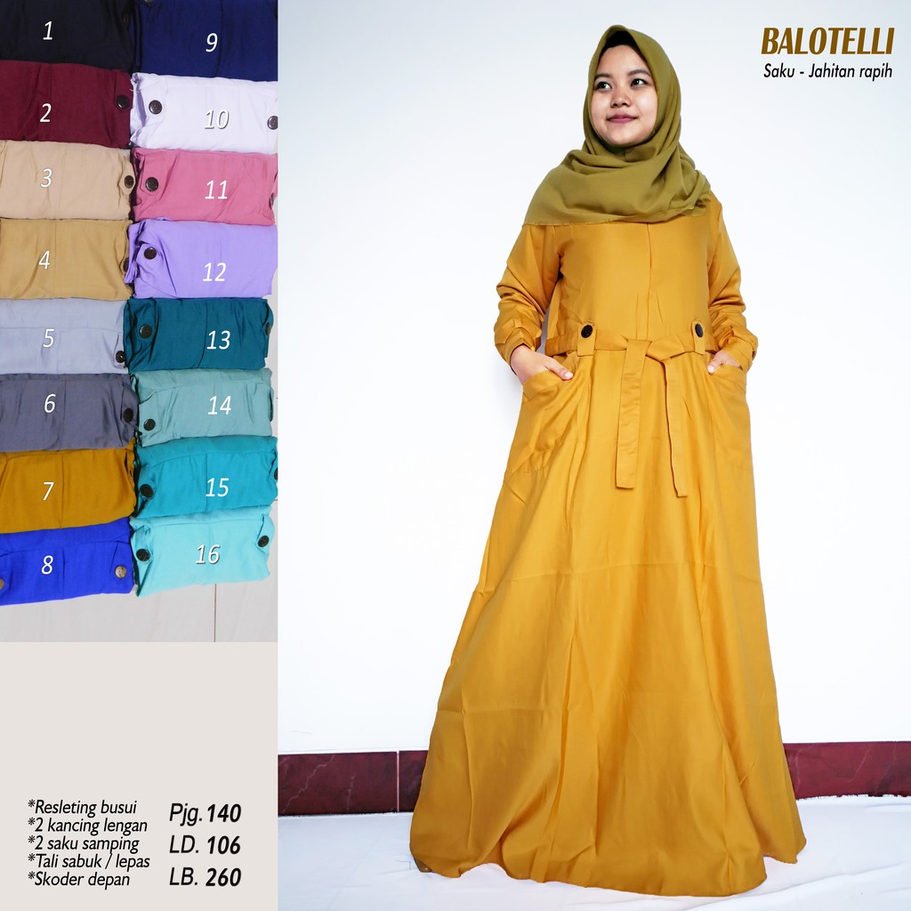 Gamis Polos Balotelli Aneka Warna S Xxl Bisa Order Size Shopee