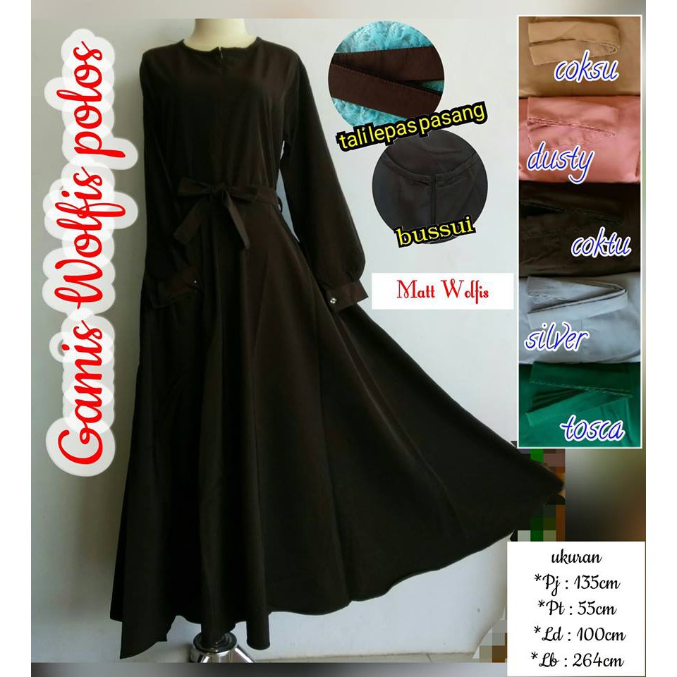 Baju gamis wolfis hitam polos payung zh bahan. Macam macam gamis wolfis terbaru 1.