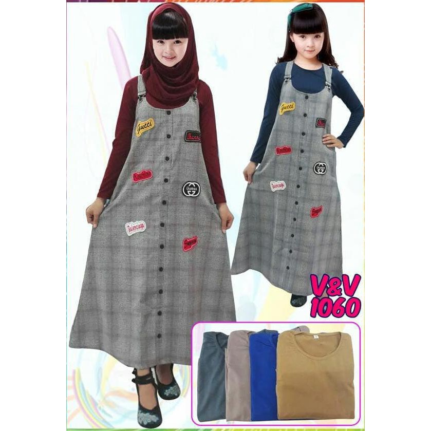 Gamis overall kotak kotak. Baik di toko butik mall sampai department store. Trend model gamis anak kotak kotak.